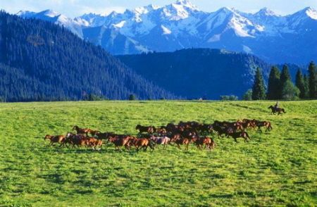 15:30-18:30 游览恰西景区,很多人都听过“塞外江南在伊犁”,却不知道后一句是“伊犁最秀在恰西”,恰西林区山高路险,至今是一块待开发的旅游处女地,素面朝天,这里山峦起伏,绿草如茵,既有群山的俊秀,又有松涛的气势,独特的原始自然风光,向世人展示了天山西部的一片净土,感受绿野中的心灵牧场。